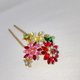 以粉红、红、黄、绿等色石组成的小巧花簪,精致优雅。 曾由新娘佩戴,整体保存良好,仅有轻微划痕。 手工制作,展现温润与独特的手作质感。