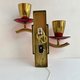 德国制造商的时尚双壁灯采用美丽的镀金黄铜和红宝石有机玻璃装饰元素。 70 年代。