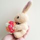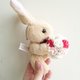 **因手工制作,每颗泡棉玫瑰花球上的玫瑰约:24~26朵,可搭配2~3种颜色,泡棉玫瑰花球直径约6cm,兔宝宝随机出货,每只高约18cm×宽约10cm,脖子系上I Love You缎带,四肢可自由活动,坐姿、站立皆可**
