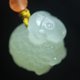 淡青底色像裹了层春日晨雾,雕得圆滚滚的小羊软 fufu 的,连卷毛肌理都润得像刚薅过的棉花糖✨ 挂在颈间是 “软萌护身符”,手盘着玩能养出柔光包浆,越戴越像揣了只随身的小福气~