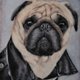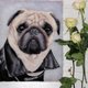 成品狗肖像画覆盖有机玻璃(为了安全运输)并装在画框中。