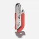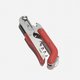 材质:不锈钢主体表面石洗处理、雾面红色PPE 表面带凹痕纹理、棘轮机构可以轻松拔出任何长度的软木塞、切割箔片的折叠锯齿刀片、皇冠瓶盖开瓶器、棘轮臂可锁定在打开和关闭位置