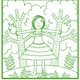 3. 找到和字贴纸,取下兔子形状人形纸卡,利用贴纸将棉线另一端贴牢在兔子人偶后后脑勺上。