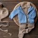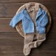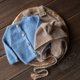 一套漂亮的新生儿男孩照片拍摄套装,饰有蕾丝领子和精致的蝴蝶结