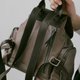 Supportingrole简约时尚翻盖真皮磁扣束口后背包 灰咖啡