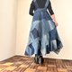 这款独一无二的吊带裙由精心拆解并重新组合的二手牛仔裤制成。大胆的拼接设计,结合随兴的毛边剪裁和戏剧性的A字裙轮廓,是其迷人之处。轻盈的穿着感让您长时间穿着依然舒适。无论是音乐祭还是日常穿搭,这款单品都能成为您的造型亮点,让您尽情享受永续且前卫的时尚。