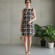 抢眼的抽象波浪格纹无袖长款上衣。后背的打褶设计为背影增添了丰富的空间感与立体层次。不紧绷的 A 字剪裁能让微风轻拂身躯,即使在炎炎夏日也能保持舒适干爽的穿着体验。
