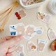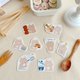 一包里面有8张可爱的小贴纸,适合用来布置手帐拼贴,或是贴在铅笔盒、收纳盒也很可爱喔! 使用透明拉环夹链袋包装,可重复利用,用来装手帐素材或发圈之类的很方便! 尺寸:单颗贴纸约4x3厘米,一包8张贴纸,外包装10x10厘米 材质:雾面贴纸,防泼水(不完全防水,表面为雾膜防泼水,底下还是铜版贴纸,无法长时间浸泡在水里喔!) 奶油鼠cream mouse 爱吃奶油的小胖鼠,大部分时间是趴着,偶尔起来伸伸懒腰~ instagram:cream.mouse