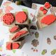 秋季印章10件组,可盖印出各种秋季元素,如松果、橡子、坚果与落叶,透过不同色彩变化,增添丰富层次。