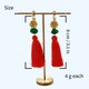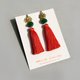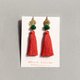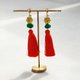 鲜艳的橘红色流苏,搭配沉稳的绿色珠饰与黄色小花零件,为您的耳畔点缀出独立而华美的气息。