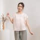 短袖上衣 舒适亲肤的天然亚麻材质 - 浅粉色搭配棕色手缝线