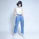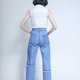 - 修身版型、纯棉材质、拼接裁片、特殊水洗、造型抽须、前后口袋。