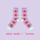 与台湾半甲经验的传统织袜厂商沟通制作,设计-产出长达两年,对品质与设计的要求反覆修改,考虑不同脚型和舒适度的需求,材质使用手感柔软的细单丝尼龙,「颜色交错、手工修线」从脚尖脚跟每一个小细节都不妥协,希望提供品质好、独创性高的sheer socks 透纱袜。