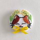 刺绣有蓬松的黄色春花、含羞草和一只猫。
