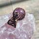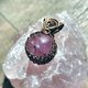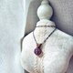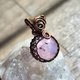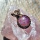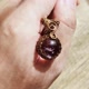 紫水晶球金属线编织吊坠,金属材质为古黄铜色艺术铜线,整体尺寸(长x宽)为30x18mm。