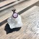这次新作中目前只有这颗紫水晶,同样顺着主石的体型做出可充分透光并且能360度转动的编织网,只在坠头做了简洁的装饰。从照片中可以发现这颗紫水晶球在不同光源背景下表情变化很丰富,希望这样的设计能让看见他的人们更专注于他的独特个性。