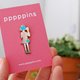 尺寸:1.2 x 3.4 cm 材质:锌合金镀金 / 硬珐琅 / 黑色橡胶背扣
