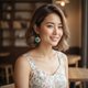 中央的湖水绿花朵,为整体增添了一抹清新与活力,仿佛是将春天的气息佩戴在耳边。 直径约2.5cm