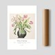 水彩插画、植物花卉、春日氛围、静物画风、现代自然风、优雅空间、咖啡馆布置、粉色系、郁金香主题、无框艺术输出
