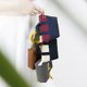 看起来小巧精炼,却有不容小觑的容量,可轻松纳入纸币硬币、银行卡等必备品。拼色及拎手的细致设计元素,兼具独特的外型与实用的功能。