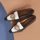 复古典雅的小方头,神秘质感的金属鞋扣,
