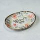 白土に艶消しの白釉を掛けた上に、子供が描いたようなユーモラスなトラとピンク色の花を中サイズのオーバルプレートに描いた器です。