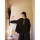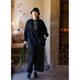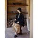落肩袖,袖口的做法更加女性化,憨态的抽着碎褶,有弧度的小开叉以及撞色的打枣,都是小小的精致复感,宽阔的袖子匹配的还是宽阔的大身,方且包容性强,有弧度的下摆插兜自如,也有淡休闲的的风味。
