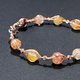 💫 整只手镯以金属线细腻绕制,每一颗锦锂胶花水晶宛如晶体里盛开的小花,被轻轻托起,错落成圈。石中红、橙、黄交融,光影下展现出自然的灵动与雅致,如同佩戴在手腕上的花语。