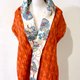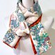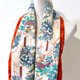这件作品手感柔润,以米白为底,构成一幅静谧而雅致的日式花草庭园。抢眼的橘色结绳流苏,为整体增添灵动的亮点。