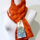 另一面以深浅不一、水分浓淡交错的橘色水彩笔触渲染,轻盈流动,如日光在布面上晕开。末端饰以多切面的 AB 地球珠,闪烁着阳光般的光泽,为作品画下明亮的收尾。