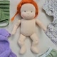 这款小巧的 Waldorf 口袋迷你婴儿娃娃高 7 英寸 (18 厘米),是适合小手抓握的完美尺寸。她采用环保材质制成:身体使用 De Witte Engel eco 认证棉质针织布,头发使用马海毛纱线,眼睛和嘴巴使用绣线绣制。她的身体和头部填充 100% 有机羊毛。脸颊的颜色使用蜂蜡蜡笔绘制。