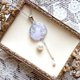 在像玛瑙一样的树脂中,融入了淡水珍珠和银箔。