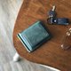 打开上盖,侧折边就顺势站立,大开口的箱型零钱袋,依附在短夹外侧,使用更便利!折边内部仔细贴上蕊材,外侧则为皮革,内衬则搭配碳灰色的高级布料 - 山东绢,再仔细地缝合。正因为如此用心制作,折边部份才能成功直立。零钱袋是以箱型折边的技法制成,此技法于日本皮革工艺称为“箱マチ”,又可称为“ボックマチ”,主要用于零钱收纳。