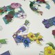 这一款贴纸把秋牡丹(Anemone hupehensis var. japonica)、火鹤花(Anthurium andraeanum )、紫菀(Aster)、南庭芥(Aubreita Deltoidea) 和非洲雏菊(African Daisy)融入字母A,结合极光膜的独特光泽,散发着独特的艺术风格。