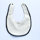 肌馴染みの良い柔らかいベルギーリネンを使ったスタイです。 裏地はオーガニックコットンのガーゼです。 黒いフリンジが可愛いです。 ギフトとしても大変喜ばれます♡ ★素材 表 ベルギーリネン100% 裏 オーガニックコットン100% リボン 綿100% ★サイズ 幅19センチ 丈26センチ スナップ直径10mm *手作りのため、多少の誤差はご了承ください。 ★お洗濯 手洗いをお勧めしております。 洗濯機で洗う場合は必ずネットに入れてください。 アイロンは必ず中以下でお願いいたします。 私が使ってきたなかで、一番使いやすかったスタイの形。 シンプルなラウンド形。 釦はスナップ。 赤ちゃんが少し動きまわるようになってもスナップだったらすぐつけられます。