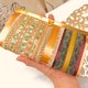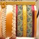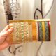 严选充满美感与可爱风格的印度刺绣缎带,以及富有光泽感的缎带,一张一张精心挑选后,再将它们巧妙地组合アレンジ,最终制成独一无二的布料,并以此作为长夹的表面设计。