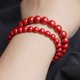 **中国红正红色,略带橘色调。表面是温润的哑光效果,会越戴越光亮,形成表面包浆。**