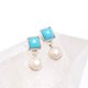 美しい水色のターコイズと上品な輝きを放つ淡水パールのシルバーピアス。