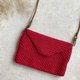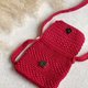 可以放一整个红包袋,背带为可拆式牛皮圆绳,拆下来就变成手拿包了~