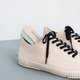 “米粒白”胚帆布,因为这样的白,不是染制出来的纯白,更正确来说,是一种没有经过染制处理的白。仔细看,还可以看到棉花壳籽的纹理,所显出的色泽与手感,而胚帆布,则是更加厚实而耐穿的材质,自古就是人们会使用的素材之一。