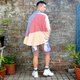 TIMBEE LO 杏蓝红三色原身拼色厚身棉质 宽松斗蓬不规则恤衫衬衫