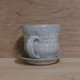 粉蓝上有鹅黄、灰绿点浮现,远看如斑驳的金色沙点,搭配手捏的质地呈现器皿独有的样貌。