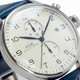 •表面: 高硬K1物料弧形玻璃,象牙白色表面,黑色印刷字钉,IP湛蓝色时分秒针,IP湛蓝色计时秒针