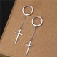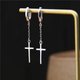 女士长链流苏耳环 基督教十字架垂坠耳环 925 纯银宗教饰品