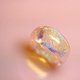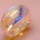 Pale pink universe with transparency. Based on erbium pink, we applied dichroic polarizing glass of fine sparkle. It was finished in a beautiful glass ring that changes the color according to the viewing angle and how the light hits.