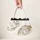 这款珠饰包以白色为基底,点缀着“雪轮”图纹。