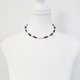 Introducing a multicolor Sapphire stone beads short necklace adorned with Clear Quartz and sterling silver beads. The necklace features an infinite connector with a small silver turtle charm hanging on one side.