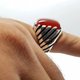 男款矩形银质也门Aqeeq Akik戒指 Carnelian玛瑙戒指设计 红色