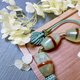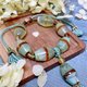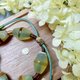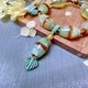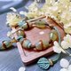 手串的编织以湖水绿色为主色调,搭配翠绿与深咖啡色的段染线,构造出一种清新脱俗的风格。手串收尾的设计巧妙点缀上似金鱼尾巴的叶子,既富有造型感,又彰显出自然之美,令人感到凉爽和舒适。这样的色彩搭配不仅视觉上吸引目光,实际佩戴时,更能透过玛瑙的冰润触感,让手腕感受到清新与活力。