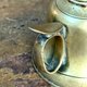 极具魅力的古董黄铜油灯,散发出19世纪末至20世纪初工艺时代的典雅气息。以厚实的黄铜手工制成,表面经岁月淬链后呈现出温润的古铜光泽,低调却极具质感。圆钟状的基座造型稳重而优雅,侧边带有指环状握柄与拇指按托,让人得以单手稳握使用,设计兼具实用与美感。上方的灯芯座与调节轮则展现出早期机械结构的精巧巧思,可细致控制灯焰的高度与亮度。